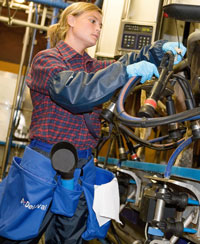 Доенето на крави е основно в една ферма и ДеЛавал знае, че фермерите трябва да покриват високи хигиенични изисквания, за да произвеждат качествено мляко. Затова проектирахме хигиенични и удобни дрехи специално за това. ДеЛавал предлага специални гащерпизони за доене, престилки, панталони, ръкавици и ръкавели за тези нужди.